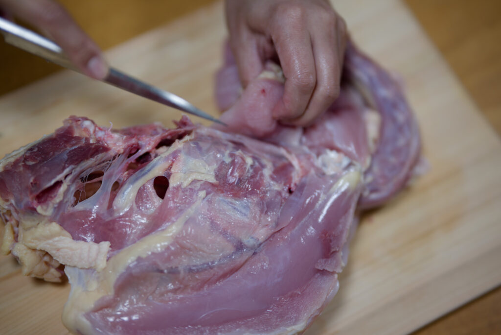 あきたシャポンの胸肉の下に隠れているササミの大きいこと