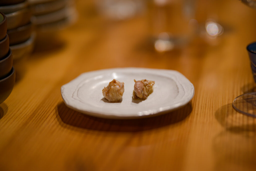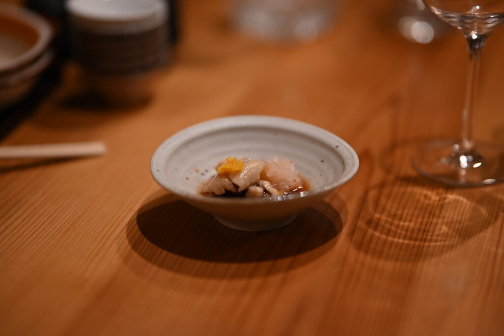 塩漬けしておいた柚子の皮と自家製ポン酢で食べていただく。