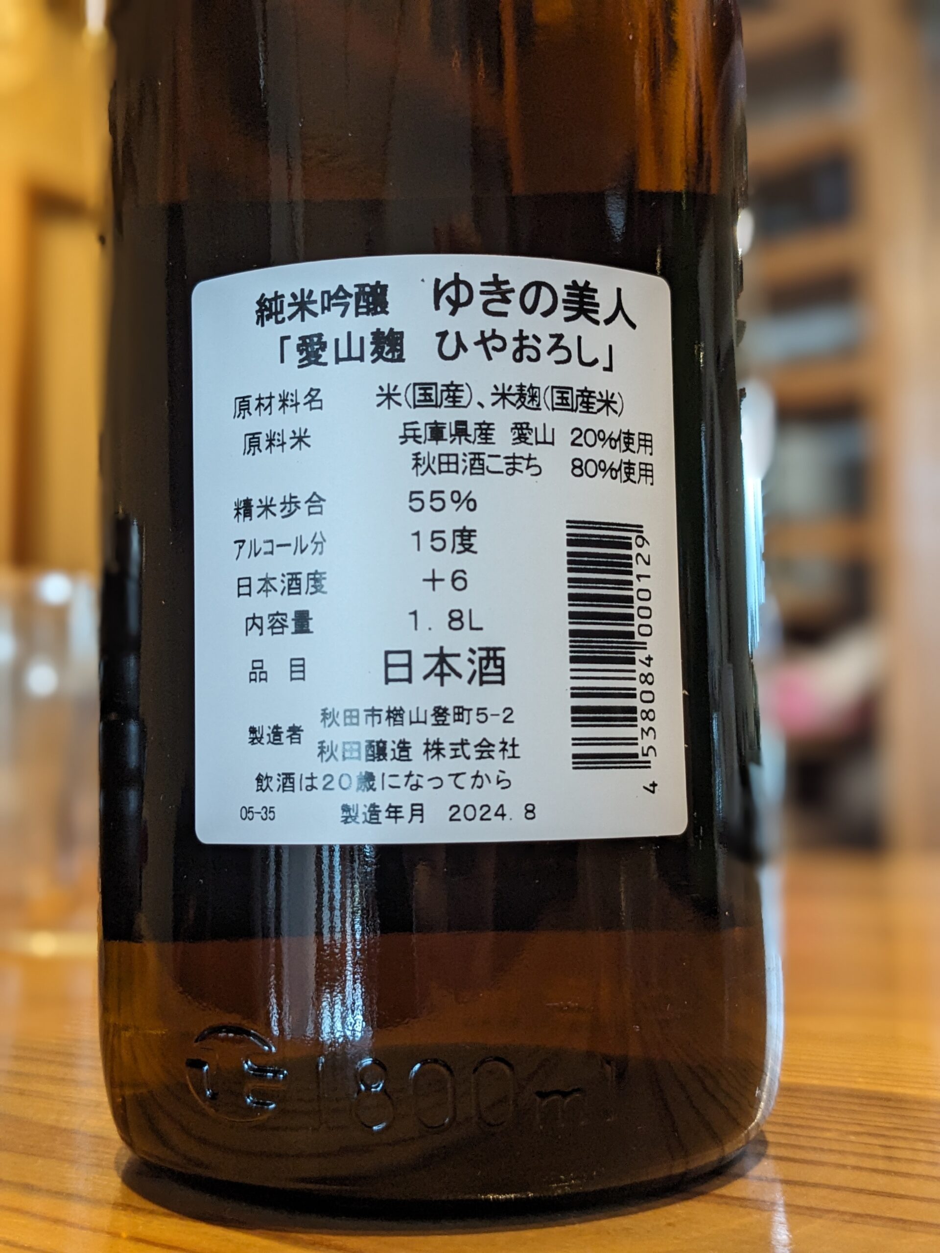 兵庫県産愛山20%、秋田酒こまち80%、ひやおろし