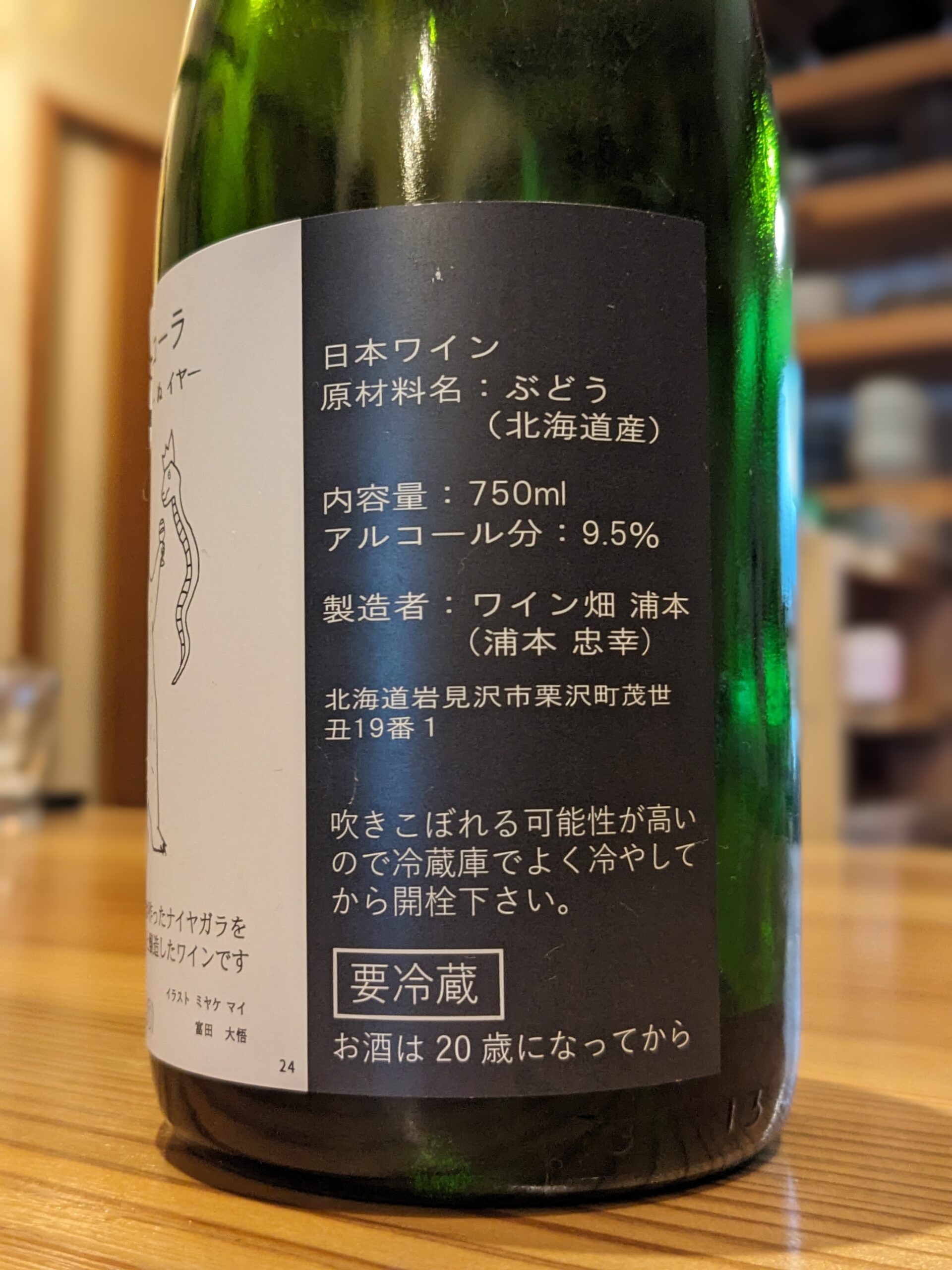 くまっぴー ぬ イヤー / ワイン畑 浦本 ワイン 2025.01.17 ワイン名:くまっぴー ぬ イヤー ワイナリー:ワイン畑 浦本/ 北海道岩見沢市栗沢町茂世丑19番1 ワイン生産者:浦本 忠幸 ブドウ品種:ナイアガラ アルコール度数:9.5