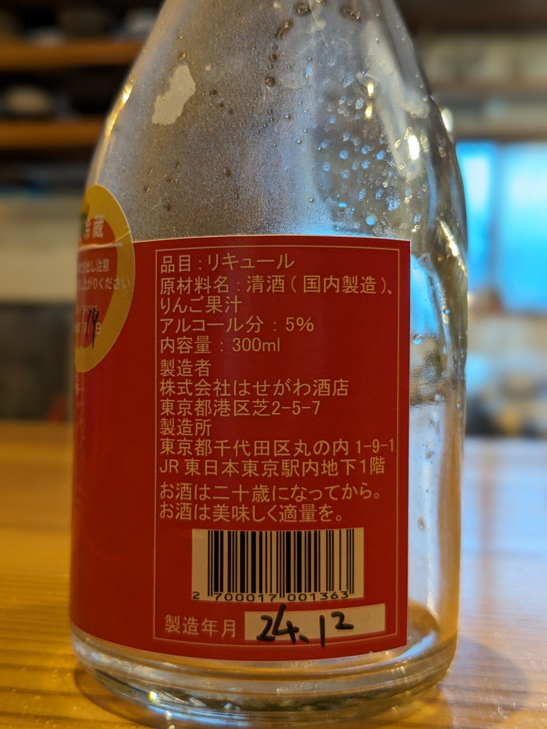 林檎どぶろく・ / 株式会社はせがわ酒店 日本酒 2025.01.17 日本酒名:林檎どぶろく 酒蔵 :株式会社はせがわ酒店/ 株式会社はせがわ酒店1-9-1JR東日本東京駅地下1階 特定名称: 酒米 : アルコール度数:5 清酒