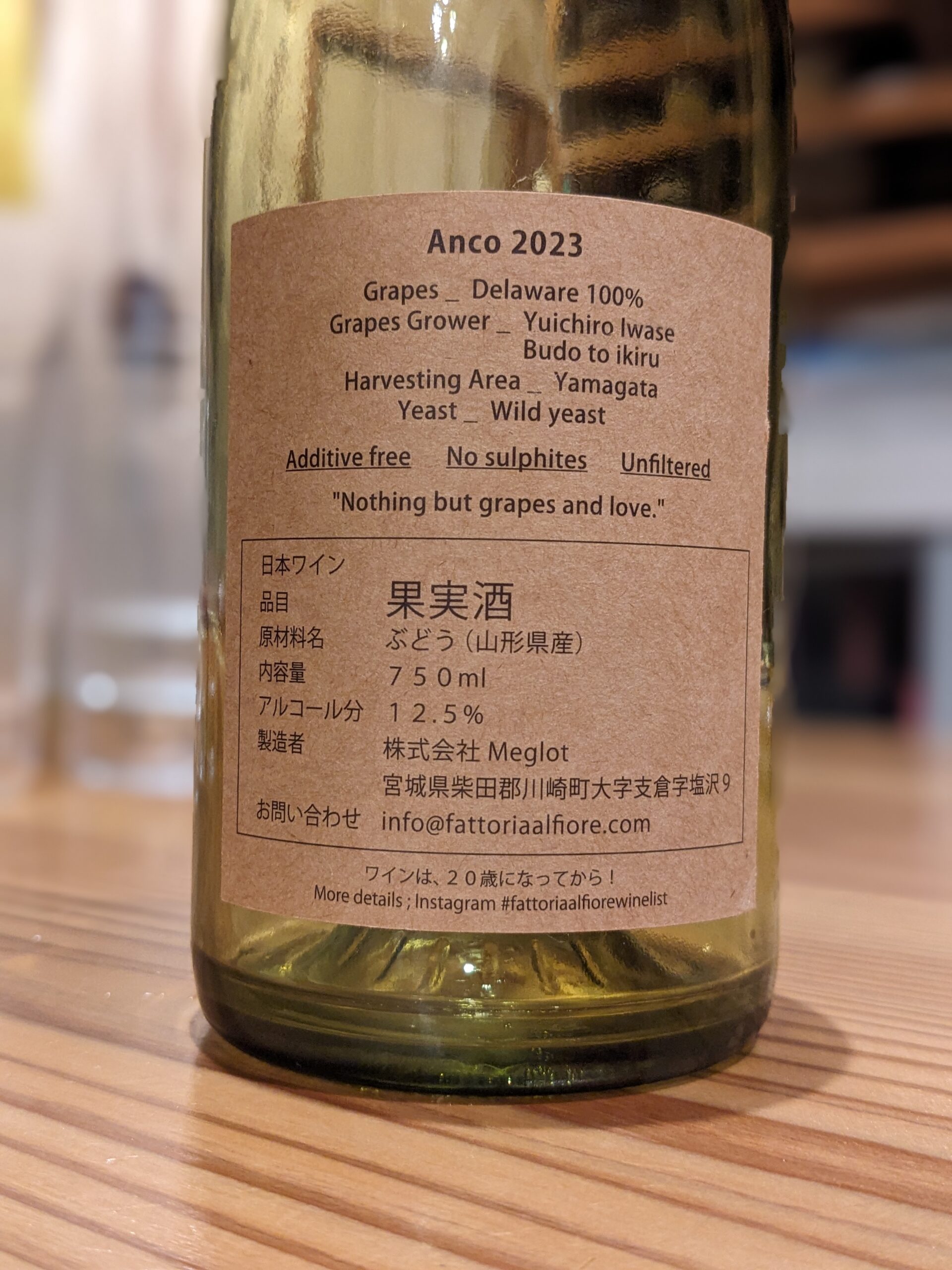 Amco 2023 2023 / 株式会社Meglot ワイン 2025.04.13 ワイン名:Amco 2023 ワイナリー:株式会社Meglot/ 宮城県柴田郡川崎町大字支倉字塩沢9 ワイン生産者:目黒浩敬 ブドウ品種:デラウェア アルコール度数:12.5